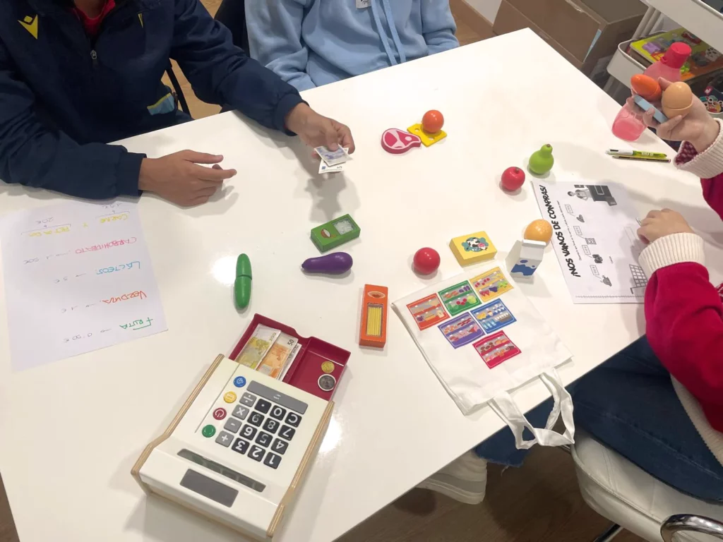 A través del juego simbólico de “ir de compras”, los y las adolescentes desarrollan razonamiento matemático y lo aplican a situaciones reales de su día a día.